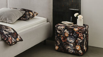Kissen, Plaid und Nachtkommoden sowie weitere dargestellte Einrichtungsgegenstände sind separat gegen Mehrpreis bestellbar.