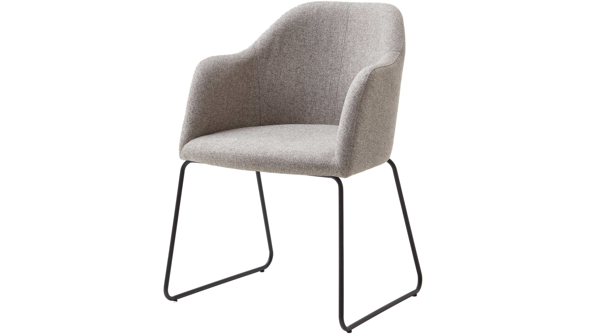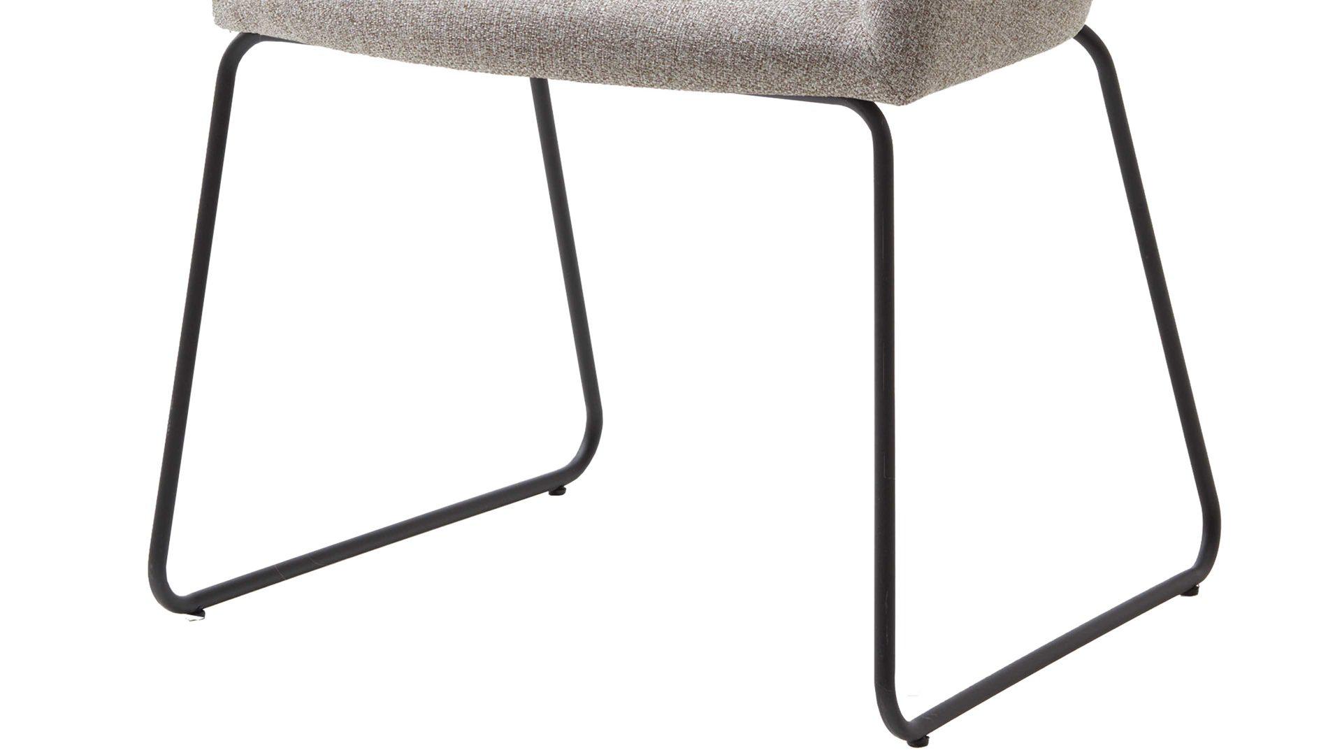 Darüber hinaus weiß er in puncto Komfort zu überzeugen. Ein schwarzes Stahldraht-Kufengestell bildet die robuste Basis. Das widerstandsfähige Material sorgt für die nötige Stabilität und die klassische Farbgebung bringt edles Flair in den Raum. Attraktiv abgerundet wird der Polsterstuhl durch den schlammfarbenen Webstoffbezug. Die trendige Farbe wirkt äußerst elegant und schafft durch die helle Nuance einen interessanten Kontrast zum Gestell. Einen feinen Akzent setzt die Steppnaht im Rücken des Schalensitzes.