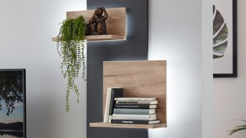 • Die Abbildung zeigt ein Wohnbeispiel, welches auch Dekoration sowie separat erhältliches Zubehör enthält. Im Lieferumfang enthalten ist eine Wohnwand.