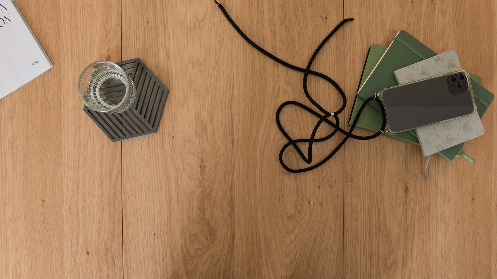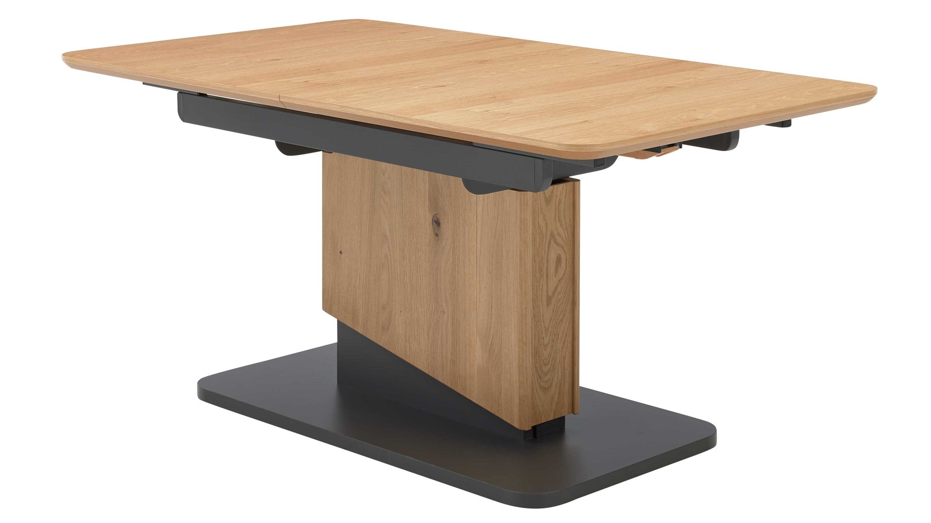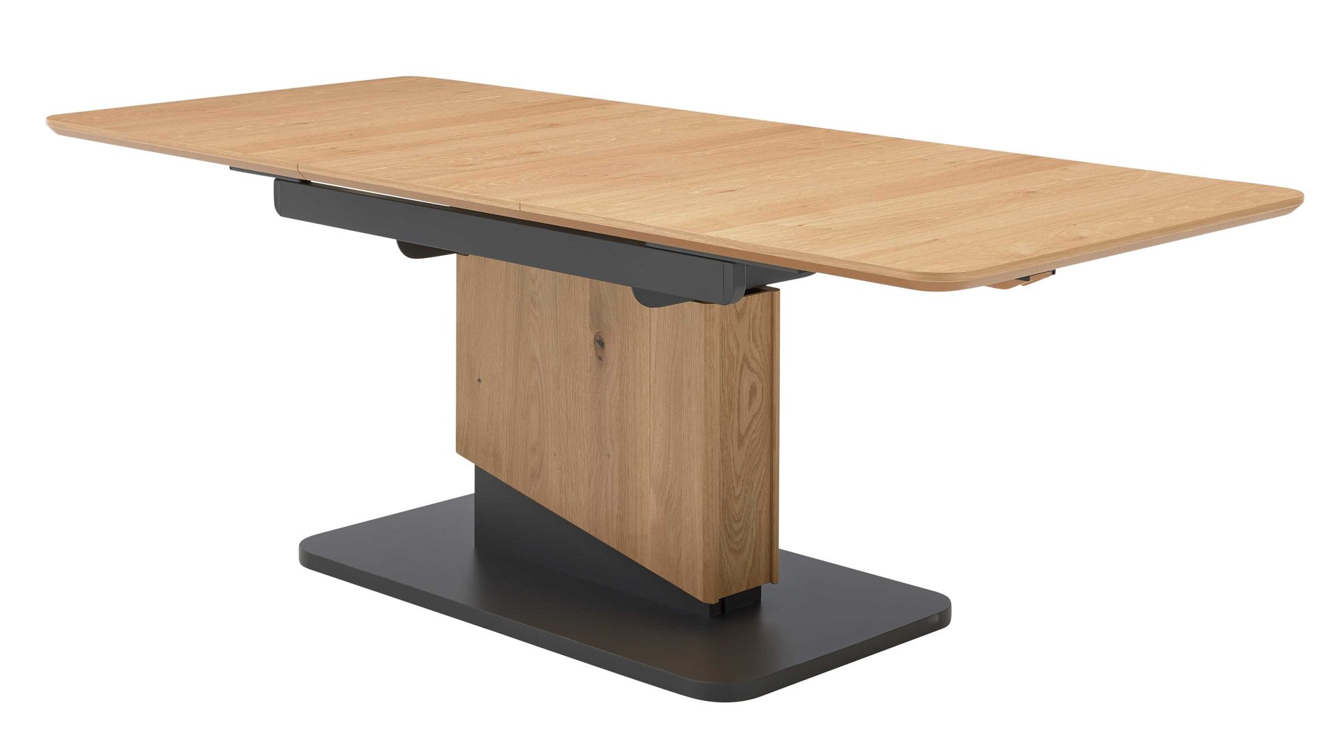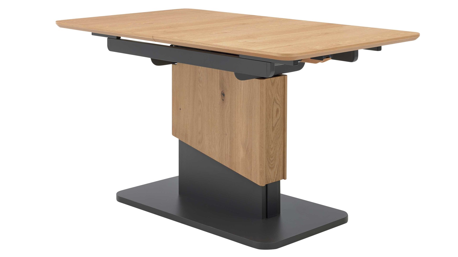 Der Hell-Dunkel-Kontrast und die natürliche Ausstrahlung der Tischplatte mit abgeschrägter Schweizer Kante verleihen ihm das gewisse Etwas.