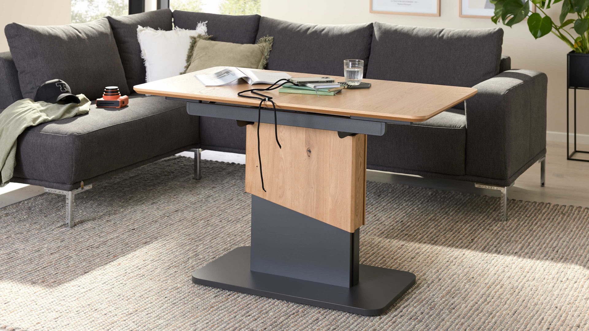 Der praktische 2-in-1-Tisch aus der Interliving Couchtisch Serie 6223 misst ca. 120 - 160 x 54 - 73 x 70 cm (L/BxHxT).