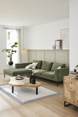 Das Sofa Roomio No. 4101 beeindruckt durch seine elegante und dennoch gemütliche Erscheinung. Mit seiner Farbgebung in der edlen Nuance Oliv und dem Bezug aus hochwertigem Feincord schafft es eine warme und einladende Atmosphäre in jedem Wohnraum. Die großzügigen Maße von 301 x 86 x 201 cm bieten ausreichend Platz für gesellige Abende oder entspannte Stunden allein. Die Sitzhöhe von 46 cm und der weiche Sitzkomfort laden zum Verweilen ein und bieten maximalen Komfort.