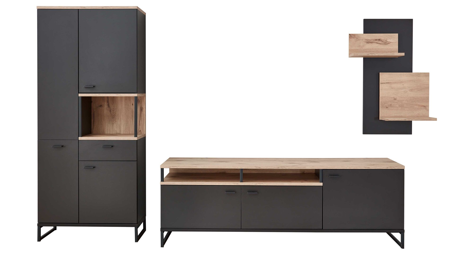 | Maße Einzelartikel: | Vitrine ca. 76,8 x 187,9 x 37,4 cm (BxHxT) Unterteil ca. 179,7 x 63,5 x 50,1 cm (L/BxHxT) Wandregal ca. 65,6 x 98,4 x 23,8 cm (BxHxT) | |
