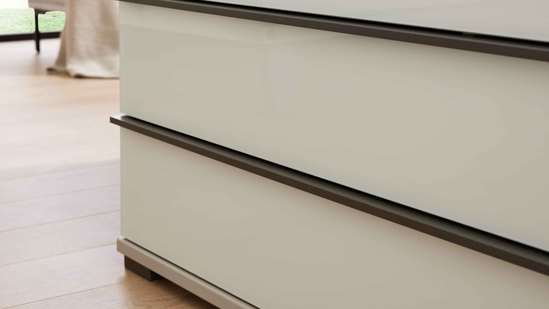 Die Kommode lässt sich hervorragend als Beistellschrank oder Solitärkommode einsetzen und fügt sich dank ihres klaren Designs nahtlos in dein Schlafzimmerkonzept ein – für ein harmonisches und stilvolles Gesamtbild.