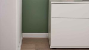 Die Melaminoberflächen sind kratzfest, UV-beständig, strapazierfähig und pflegeleicht – ideal für den täglichen Gebrauch. Das Zusammenspiel aus Tonweiß matt und Floatglas sorgt für eine zeitlose, moderne Optik, die sich harmonisch in dein Wohnkonzept einfügt. Das Lowboard wird vormontiert geliefert, sodass du es direkt aufstellen und nutzen kannst.