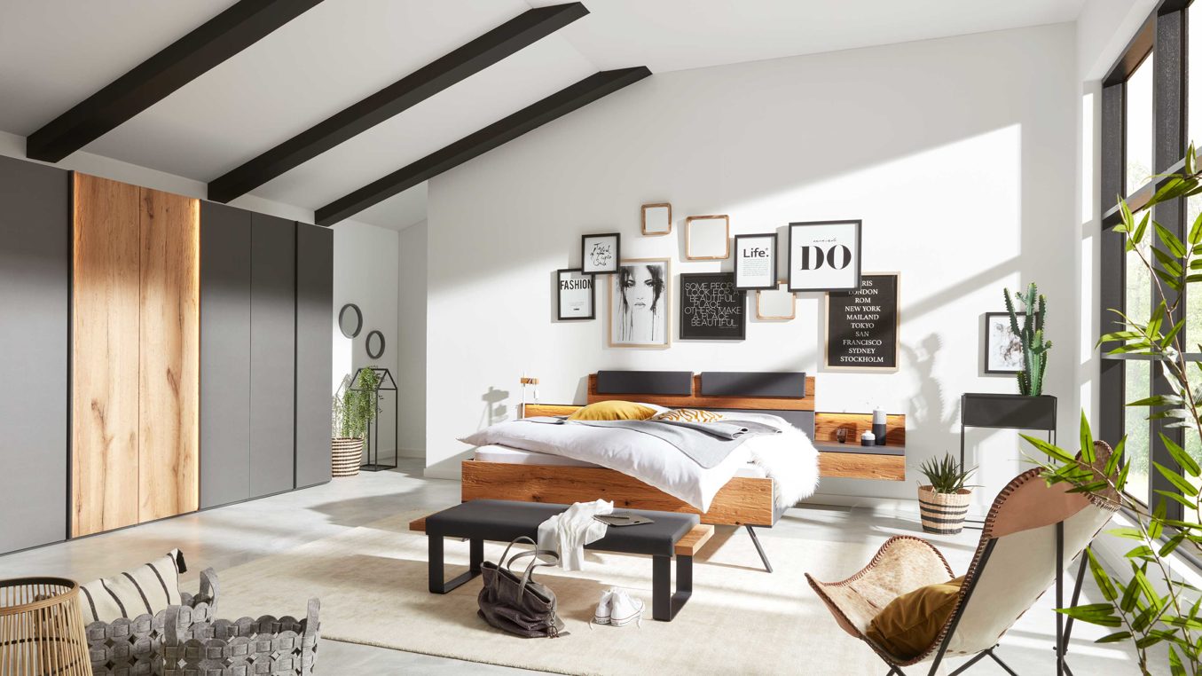 Die Schlafmöbelkombination mit LED-Beleuchtung und praktischer Bettbank aus der Interliving Schlafzimmer Serie 1025