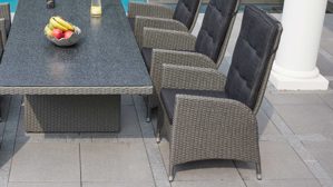 in Grautönen meliertes Kunststoffgeflecht und anthrazitfarbene Kunstfaser