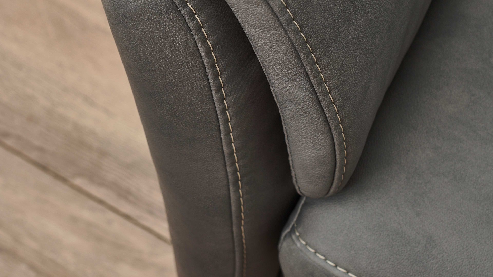 geprägter grauer Mikrofaserbezug in Lederoptik mit beiger Kontrastnaht