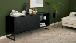 Lieferumfang: 1x Lowboard (ohne Dekoration)