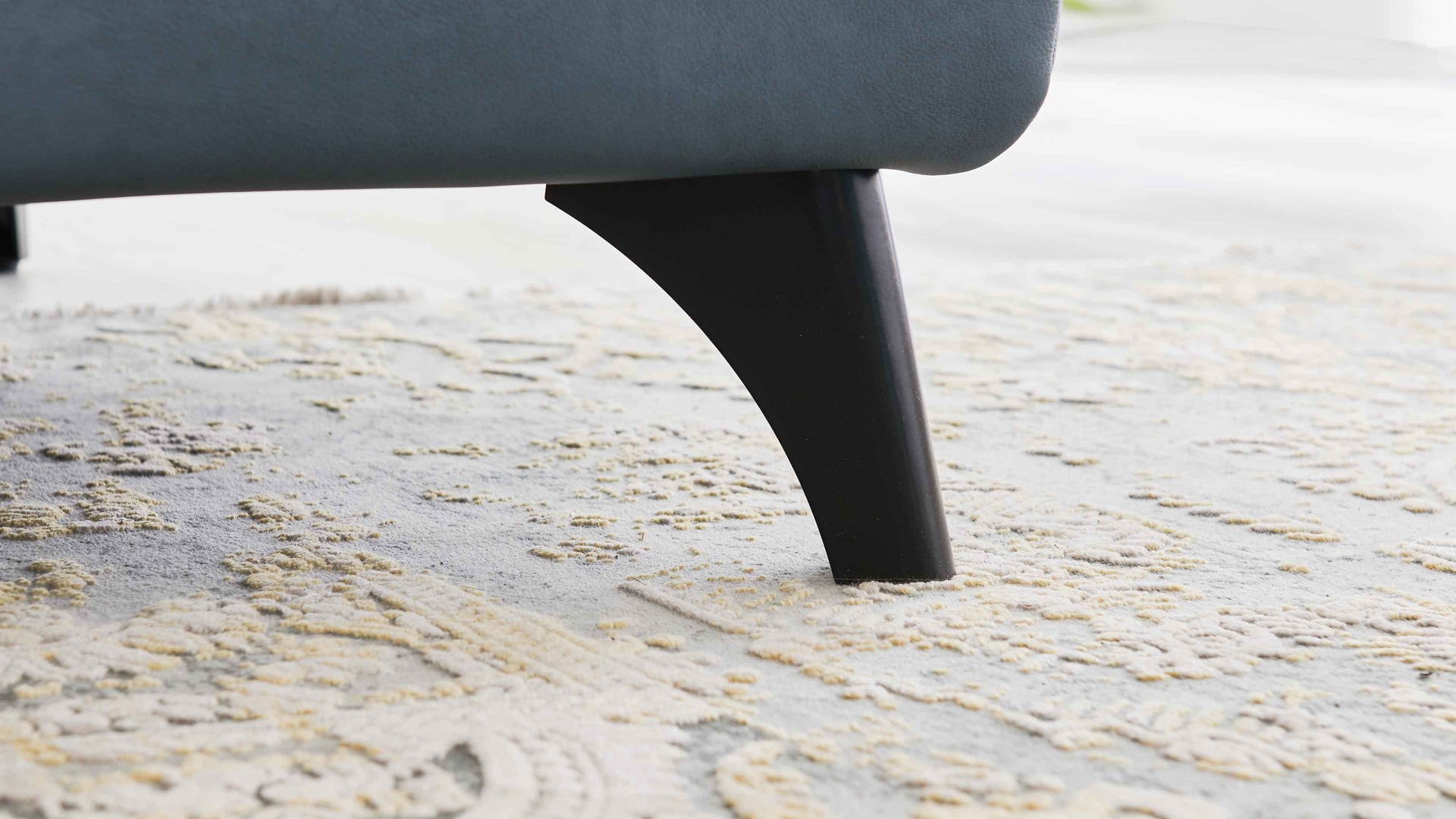 Es kombiniert einen edlen graublauen LongLife-Lederbezug mit puristisch-mattschwarzen Chromfüßen. Die Farben strahlen stilvolle Eleganz aus und harmonieren hervorragend miteinander. Darüber hinaus begeistert die hohe Qualität der Materialien: Das Leder ist enorm widerstandsfähig und langlebig und die robusten Chromfüße sorgen für die nötige Standfestigkeit und Stabilität der Polsterecke.