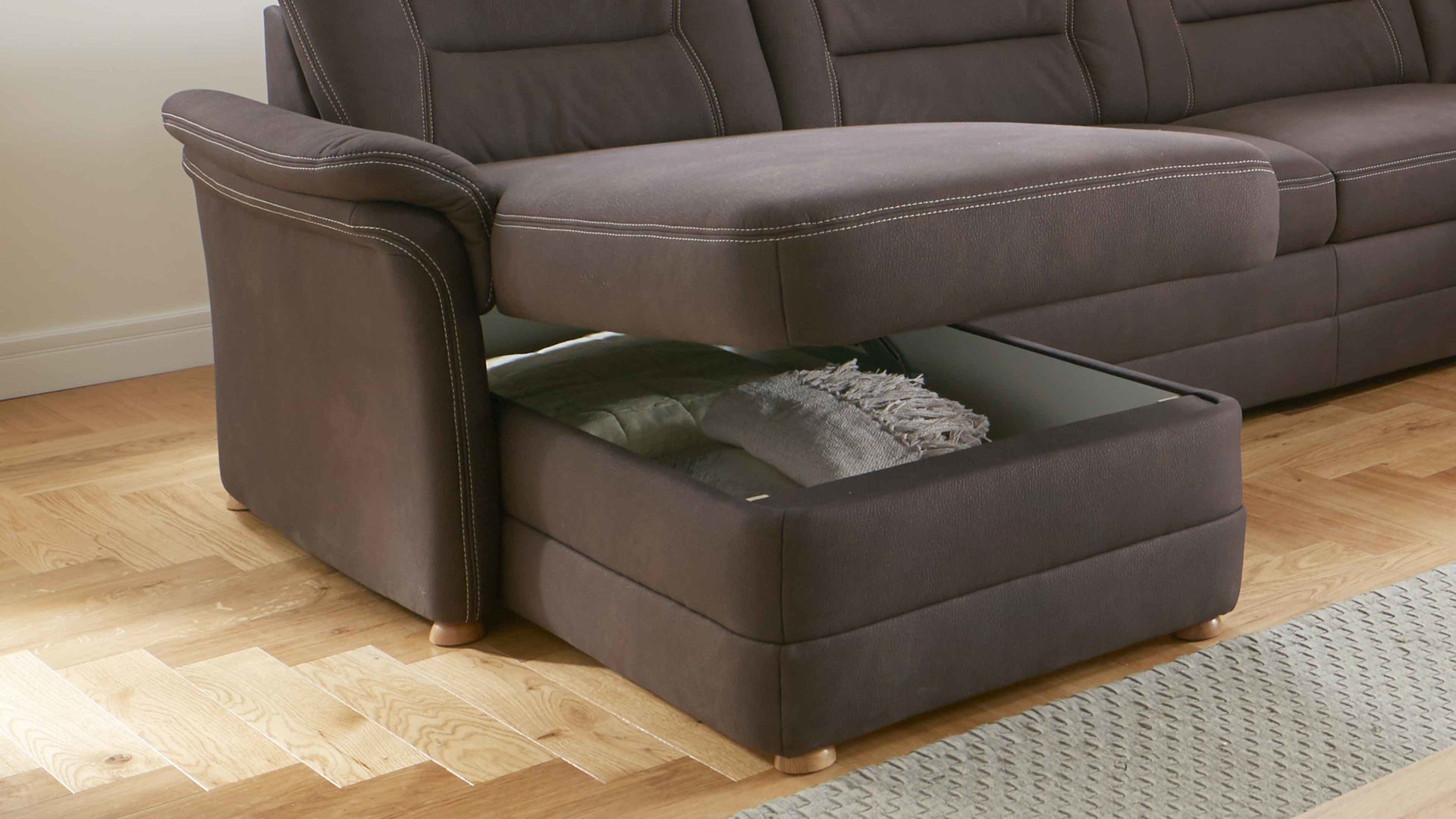 Bei der Aufklappfunktion handelt es sich um einen praktischen Funktions-Mehrpreis für die Canapés aus dem Modulmaster-Polsterprogramm MM-PP1067. Der manuell aufklappbare Stauraum ist innen weiß beschichtet und belüftet. Er eignet sich zum Verstauen verschiedener Wohntextilien, aber auch zur Aufbewahrung von Spielzeug und sonstigen Gegenständen.