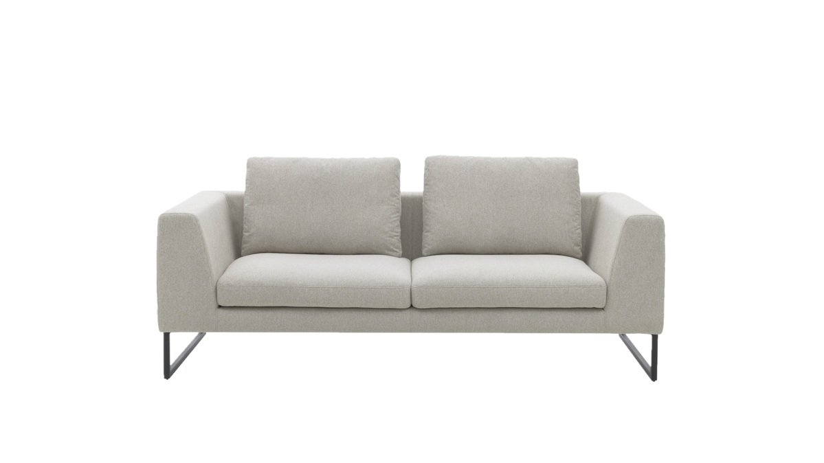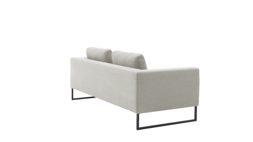 Die schwarz mattierten Metallkufen verleihen dem Sofa einen modernen und gleichzeitig zeitlosen Look, der sich nahtlos in unterschiedliche Einrichtungsstile einfügt. Der Bezug "Simply Clean Sand" ist nicht nur optisch ansprechend, sondern auch äußerst pflegeleicht, was das Sofa besonders alltagstauglich macht.