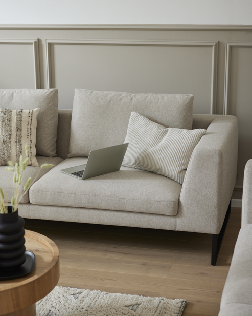 Das 2,5-Sitzer Sofa in der eleganten Farbe Sand von Roomio ist die perfekte Ergänzung für stilvoll eingerichtete Wohnzimmer. Mit den Maßen 210 x 83 x 98 cm bietet es ausreichend Platz für entspanntes Sitzen zu zweit. Die Sitzhöhe von 46 cm und die Sitztiefe von 57 cm sorgen dabei für einen außergewöhnlich weichen Sitzkomfort, der zum Verweilen einlädt.