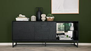 Lieferumfang: 1x Lowboard (ohne Dekoration)