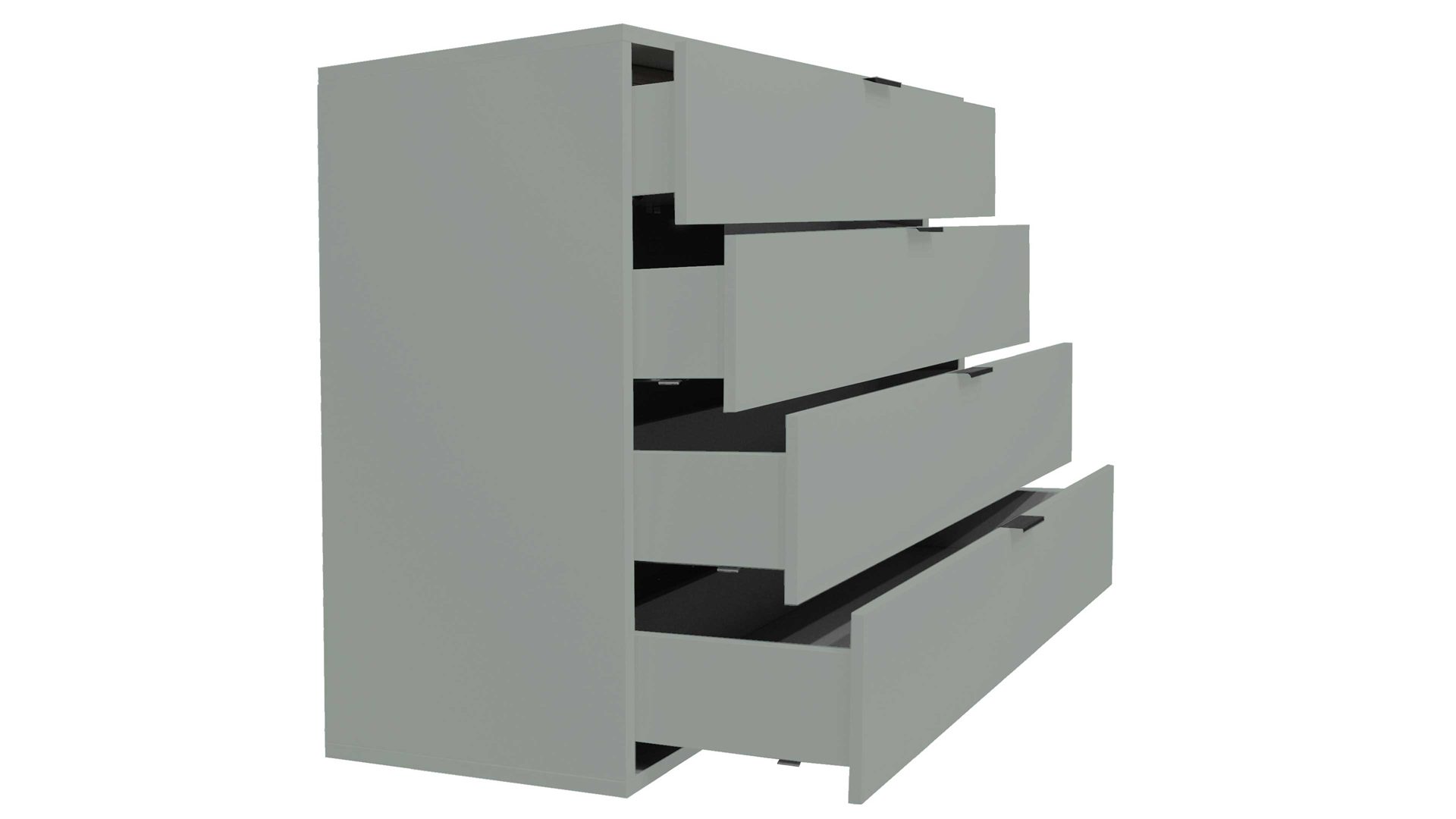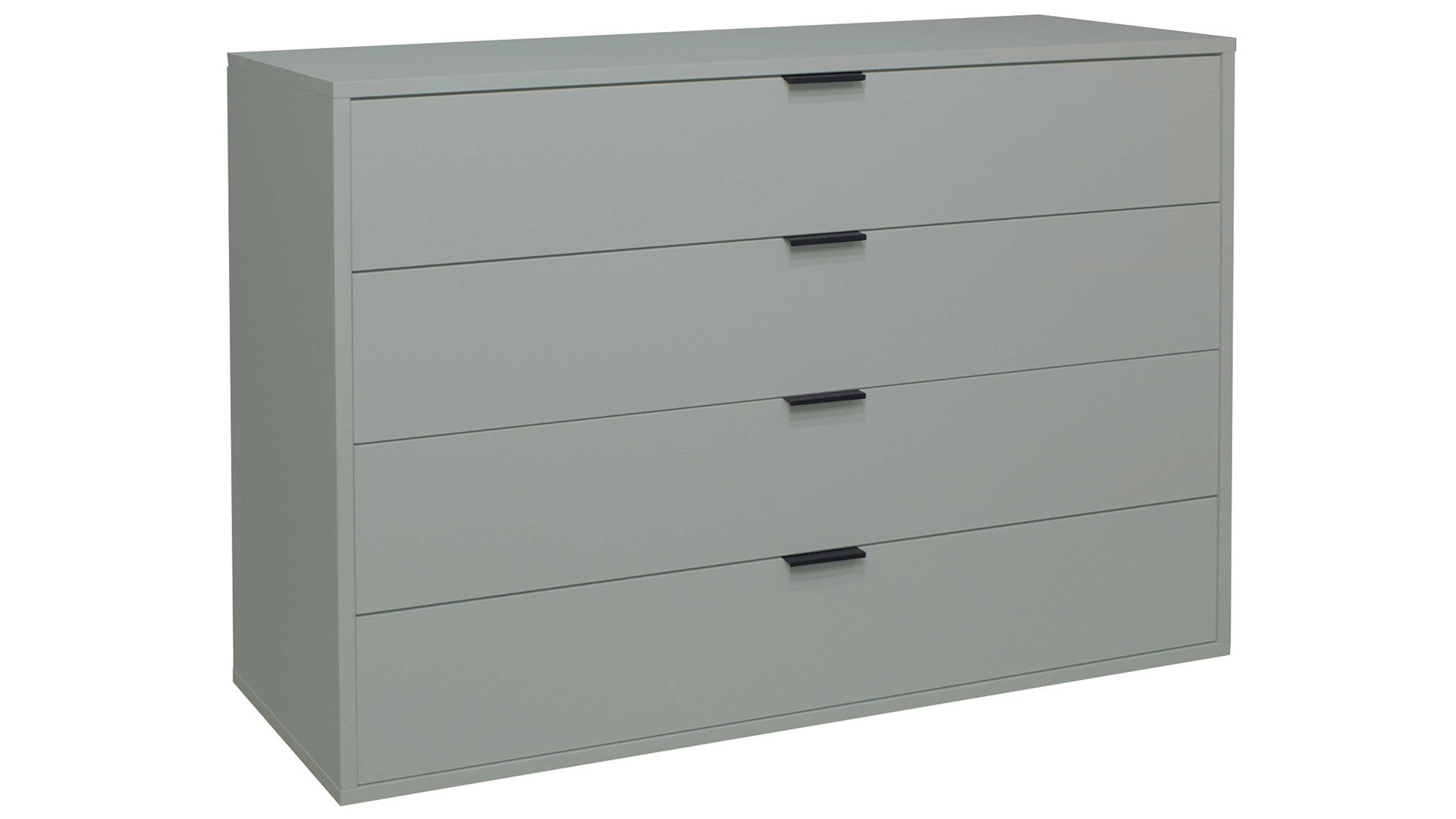 Die stabile Kommode ist mit vier Schubladen ausgestattet, die Ihnen beispielsweise Stauraum für Wäsche bieten und durch die Softclose-Funktion sanft und leise schließen. Auf dem Oberboden haben Sie Platz für eine Lampe und auch andere Deko. Die Maße des Kommodenschranks betragen ca. 119 x 87 x 45 cm (BxHxT).