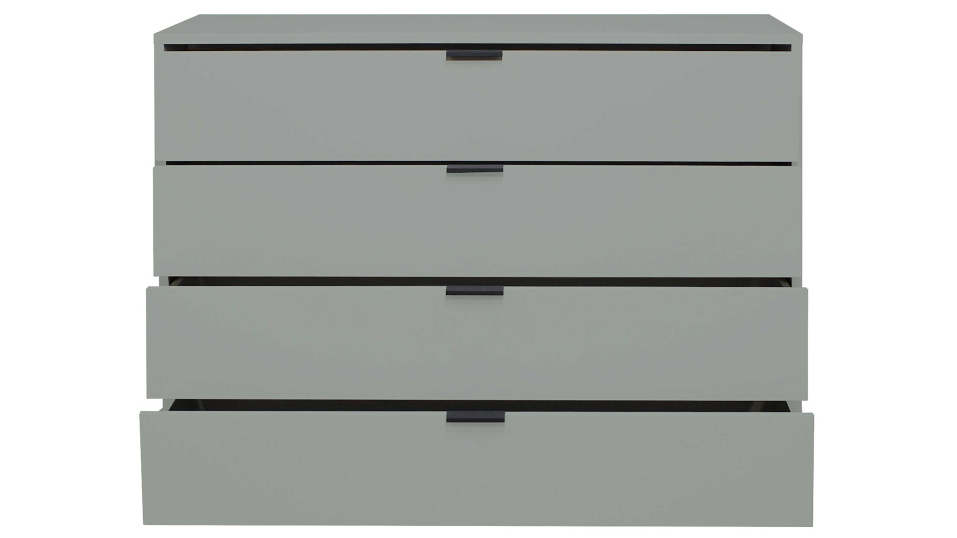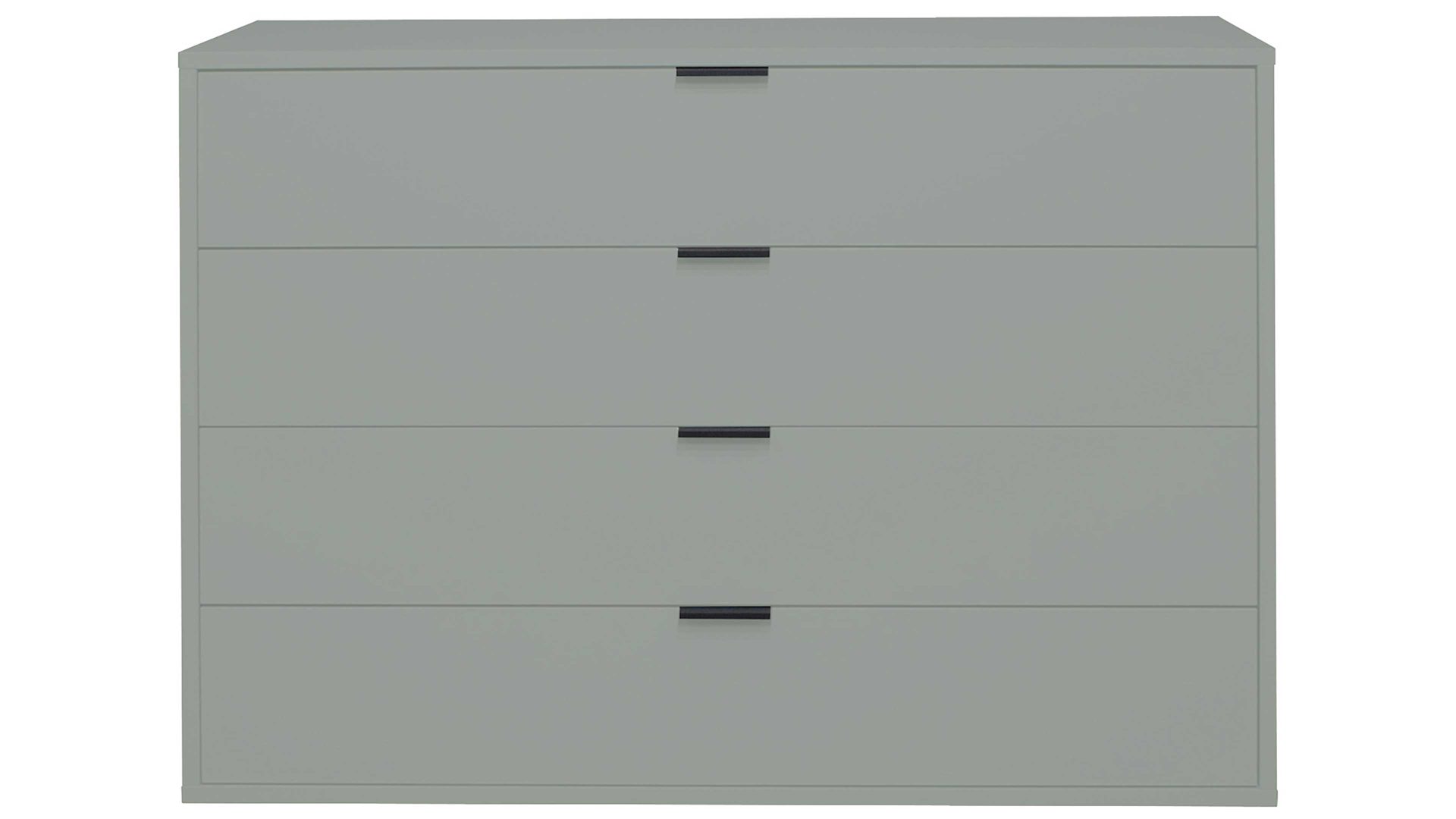 Mit ihren piniengrünen Mattlackoberflächen verkörpert die Schubladenkommode Bonnie moderne Eleganz.