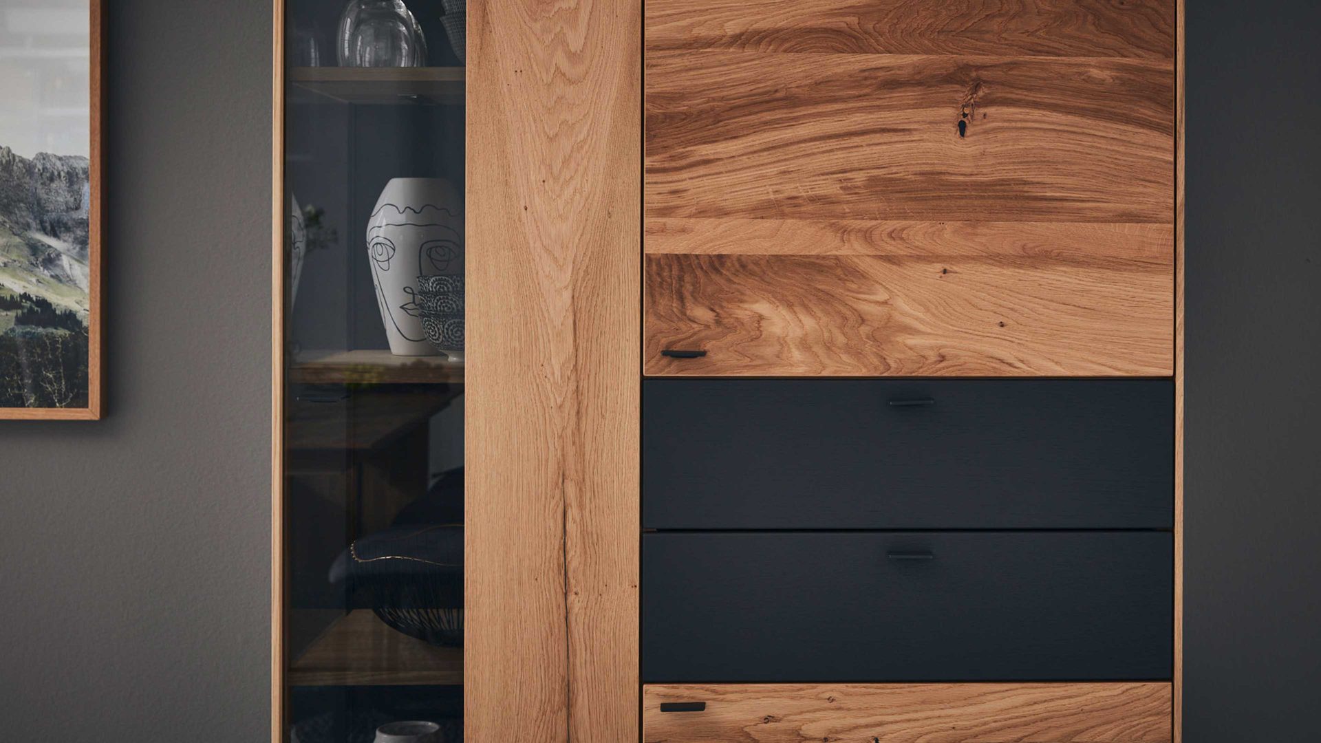 Anthrazit & Eiche rustico- drei Türen, zwei Schubladen