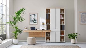 Die Homeofficelösung aus der Interliving Wohnzimmer Serie 2031 verwandelt deinen Arbeitsplatz zuhause in einen modernen, aufgeräumten und inspirierenden Ort. Die fünfteilige Kombination in mattem Tonweiß und Risseiche-Nachbildung verbindet klare Linien mit wohnlicher Natürlichkeit – perfekt für alle, die im Homeoffice Wert auf Design, Funktion und Atmosphäre legen.
