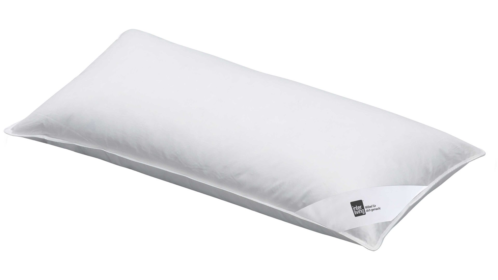 Mit einer Gesamtfüllmenge von ca. 640 g und kompakten Maßen von ca. 40 x 80 cm (BxL) bietet das 3-Kammer-Daunenkissen die perfekte Balance aus Nachgiebigkeit und Halt – ideal für jede Schlafposition.