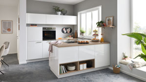 Interliving Küche Serie 3081 – Glanz trifft Natürlichkeit in moderner U-Form