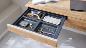 | Verstellbarkeit und Funktion: | höhenverstellbare(r) Einlegeböden / Einlegeboden push to open Schließdämpfung Soft-Close Kabeldurchlass | |