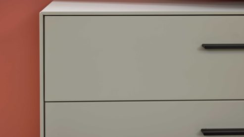 Das Lowboard (Typ 47 05 MM 32) aus der Interliving Wohnzimmer Serie 2030 PLUS vereint modernes Design mit cleverem Stauraumkonzept – perfekt für stilvolle Wohnräume mit Anspruch. Die Sahara cremefarbenen Lackoberflächen verleihen dem Möbelstück eine warme, elegante Note, während schwarz lackierte Metallgriffe und -füße mit Feinstruktur für einen markanten Kontrast sorgen. So entsteht ein edles Gesamtbild, das sich harmonisch in zeitgemäße Wohnkonzepte einfügt.