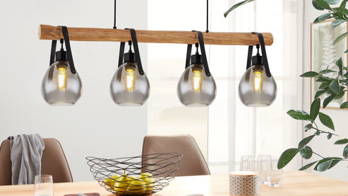 Ob über dem Esstisch oder im Wohnzimmer – die Wohnraum-Hängelampe schafft eine stimmungsvolle Atmosphäre. Mit ca. 65 x 15 cm (B/LxT) und einer Kabellänge von ca. 150 cm passt sie perfekt in offene Wohnbereiche und setzt jeden Raum gekonnt in Szene.