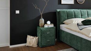 Stilvolle Ordnung in moosgrünem Design mit der Nachtkommode aus der Interliving Bettensystem Serie 1420 - Einzelkommode trifft Design und Funktion
