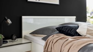 Klar, modern und funktional – das Bettgestell (Typ B20209) aus der Interliving Schlafzimmer Serie 1033 vereint stilvolles Design mit durchdachten Details für erholsamen Schlaf. Die weißen Oberflächen in Kombination mit einer weißen Glaseinlage im Kopfteil und den schieferfarbenen Metall-Winkelfüßen verleihen dem Bett eine elegante Leichtigkeit und schaffen ein modernes, harmonisches Ambiente in deinem Schlafzimmer.