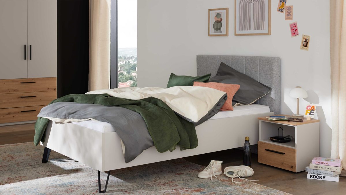 Plane das Bettgestell gemeinsam mit passenden Stauraum- und Arbeitsmöbeln der Interliving Jugendzimmer Serie 1702, um ein harmonisches Gesamtbild zu schaffen. Durch die modulare Planung wächst das Jugendzimmer problemlos mit und bleibt auch bei veränderten Anforderungen funktional und stilvoll.