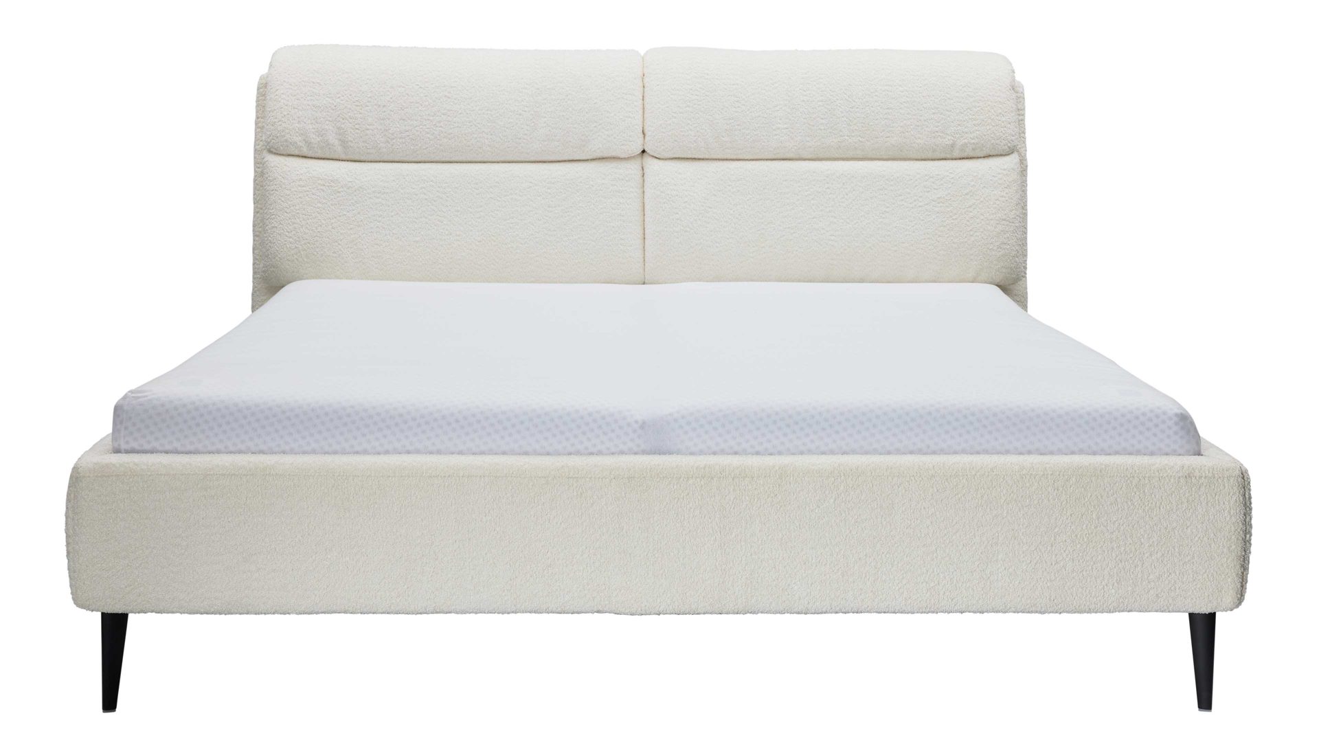 Die kubisch gepolsterten Bettseiten mit anthrazitfarben lackierter Innenseite ergänzen das klare Design und bilden zusammen mit den dunklen Metallfüßen ein harmonisches Gesamtbild. Für zusätzliche Gestaltungsfreiheit kannst du aus vier weiteren Fußvarianten in zwei Höhen wählen.