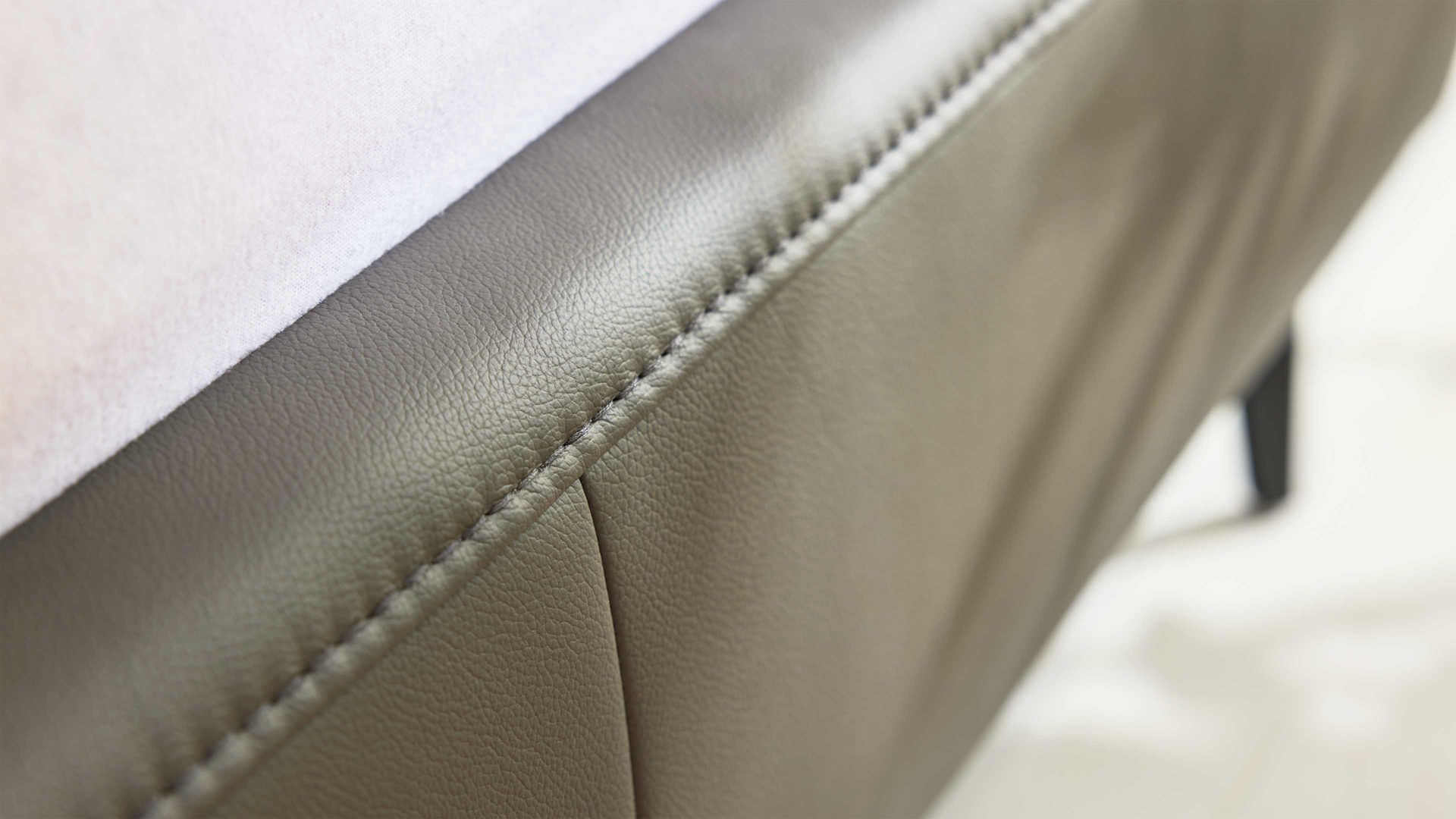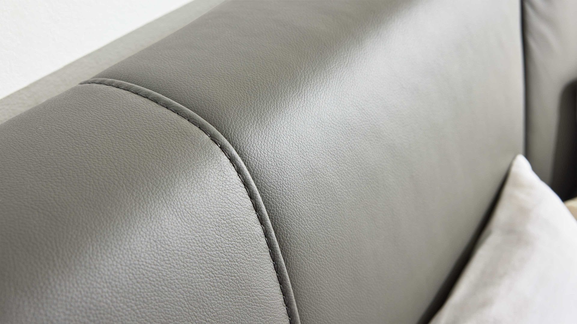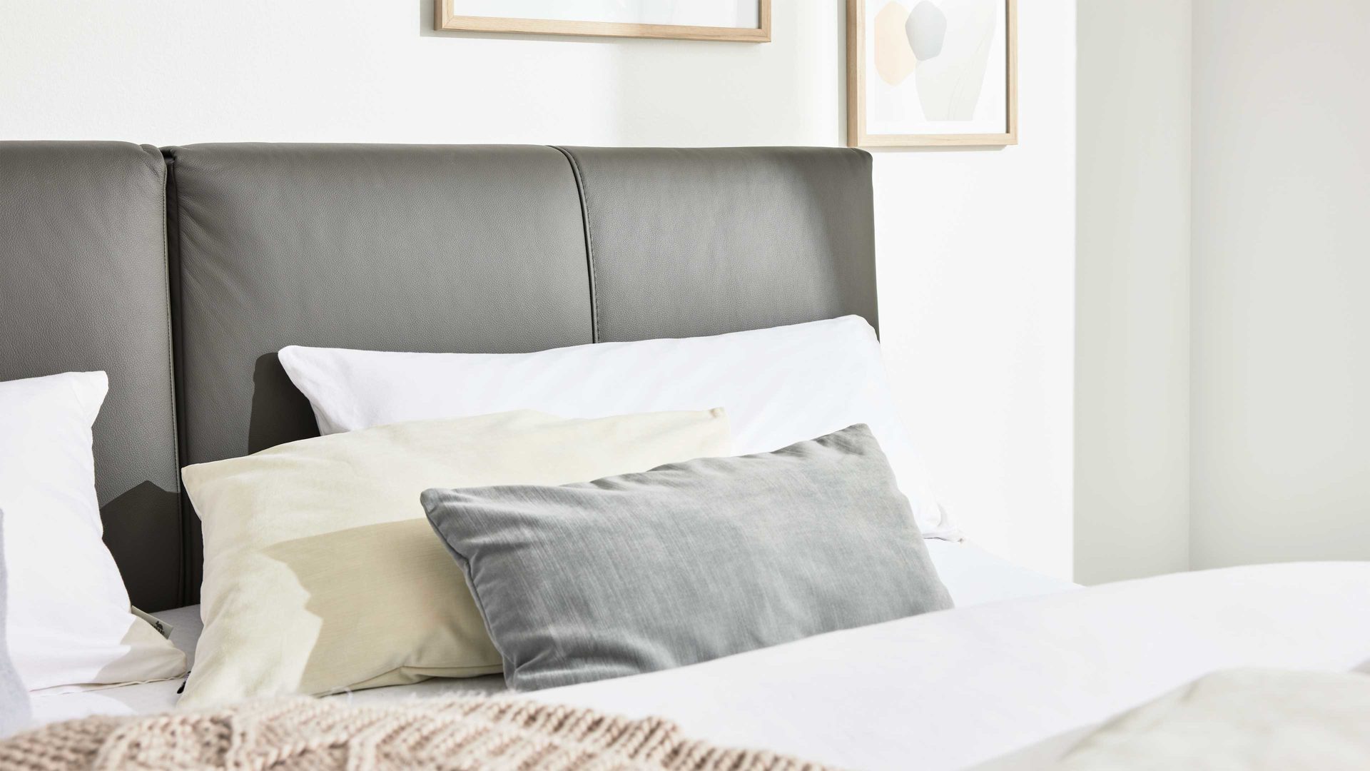 Ein echtes Highlight ist das bodenfreie Polsterkopfteil, das mit seiner eleganten Kappnaht und filigranen Linienführung für Leichtigkeit sorgt. Die weiche Polsterung bietet bequemen Halt beim Lesen, Fernsehen oder Frühstück im Bett. Optional kann die Rückseite im Originalleder ausgeführt werden, sodass sich das Bett auch frei im Raum perfekt in Szene setzen lässt. Insgesamt stehen sechs Kopfteilvarianten in unterschiedlichen Höhen zur Wahl – teilweise auch mit praktischen Zusatzfunktionen.