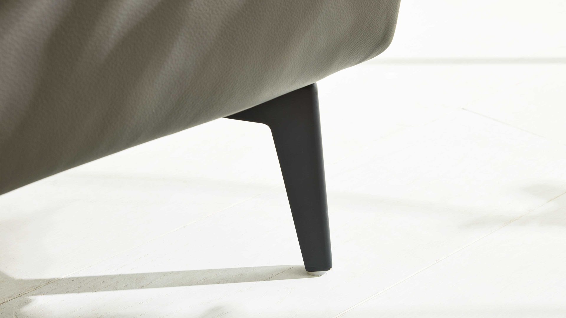 Die kubischen Bettseiten, weich gepolstert und innen anthrazitfarben lackiert, bilden zusammen mit den schwarzen Füßen ein stimmiges Gesamtbild. Für individuelle Akzente kannst du aus vier weiteren Fußvarianten in zwei Höhen wählen. Besonders komfortabel: Die Liegehöhe lässt sich um ca. 7 cm variieren – ideal, um das Bett perfekt an deine Bedürfnisse anzupassen.