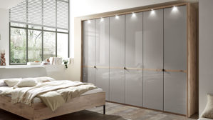 Schlafzimmerschrank mit sechs leise schließenden Drehtüren