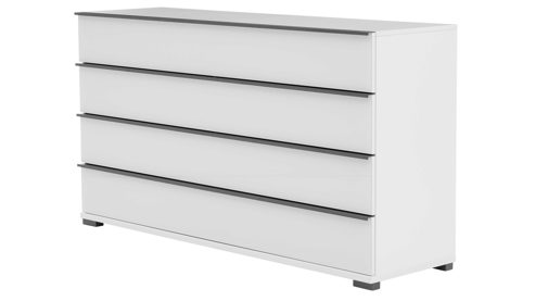 Modern, praktisch, hochwertig: Die Schubladenkommode (Typ B20089) aus der Interliving Schlafzimmer Serie 1033 verbindet ein klares, zeitgemäßes Design mit komfortabler Funktionalität. Der weiße Korpus, hochwertige Glasfronten in Weiß und schieferfarbene Griffleisten schaffen eine elegante Optik, die sich harmonisch in jedes moderne Schlafzimmerambiente einfügt.