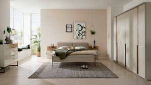 Auch die Bettgestelle sind in unterschiedlichen Größen von 140 bis 200 cm Breite sowie in verschiedenen Längenvarianten erhältlich. Passende Nachtschränke und Beimöbel ermöglichen dir eine perfekt abgestimmte Schlafzimmergestaltung. Optional sind außerdem stimmungsvolle Beleuchtungslösungen erhältlich.