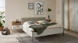 Auch die Bettgestelle sind in unterschiedlichen Größen von 140 bis 200 cm Breite sowie in verschiedenen Längenvarianten erhältlich. Passende Nachtschränke und Beimöbel ermöglichen dir eine perfekt abgestimmte Schlafzimmergestaltung. Optional sind außerdem stimmungsvolle Beleuchtungslösungen erhältlich.