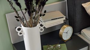 Mit Maßen von ca. 46 x 30 x 18 cm (B/LxHxT) bietet das Paneel eine praktische Ablagefläche für Bücher, Deko oder persönliche Gegenstände. Es wird rechtsseitig am Bett montiert und fügt sich harmonisch in das Gesamtkonzept der Serie ein.