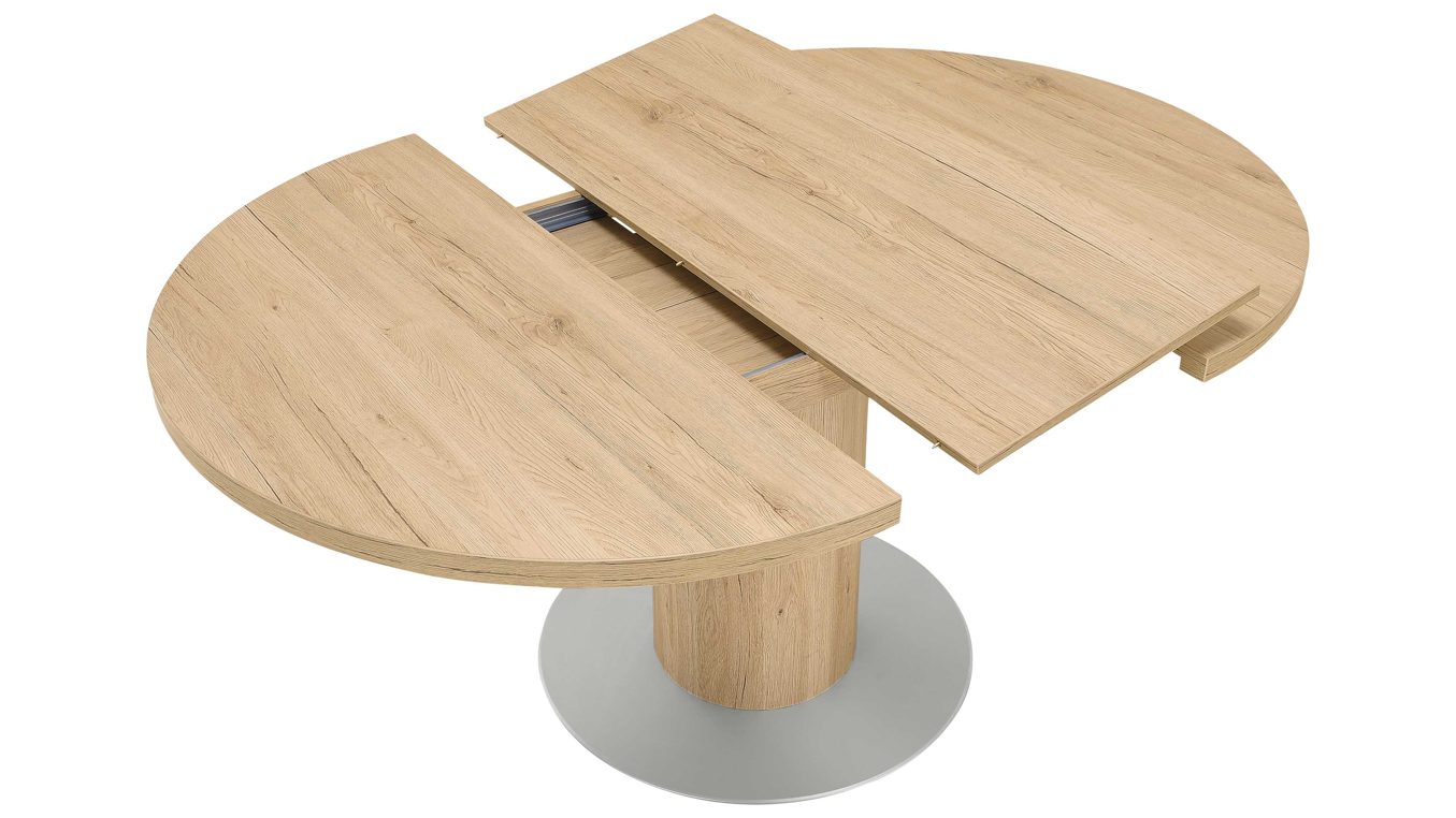 der Tisch lässt sich mit einer ca. 45 cm breiten Einlegeplatte von ca. 115 auf ca. 160 cm vergrößern