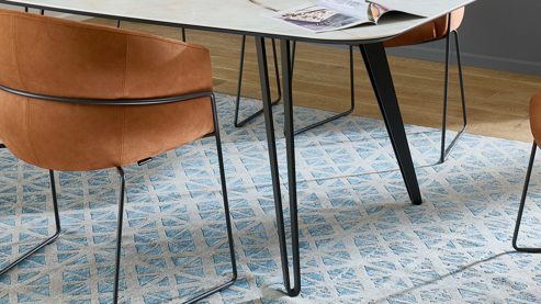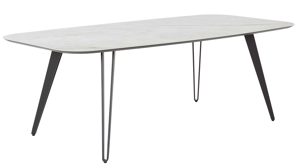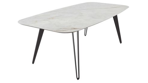 die Keramiktischplatte mit Marmorierung ist robust und pflegeleicht