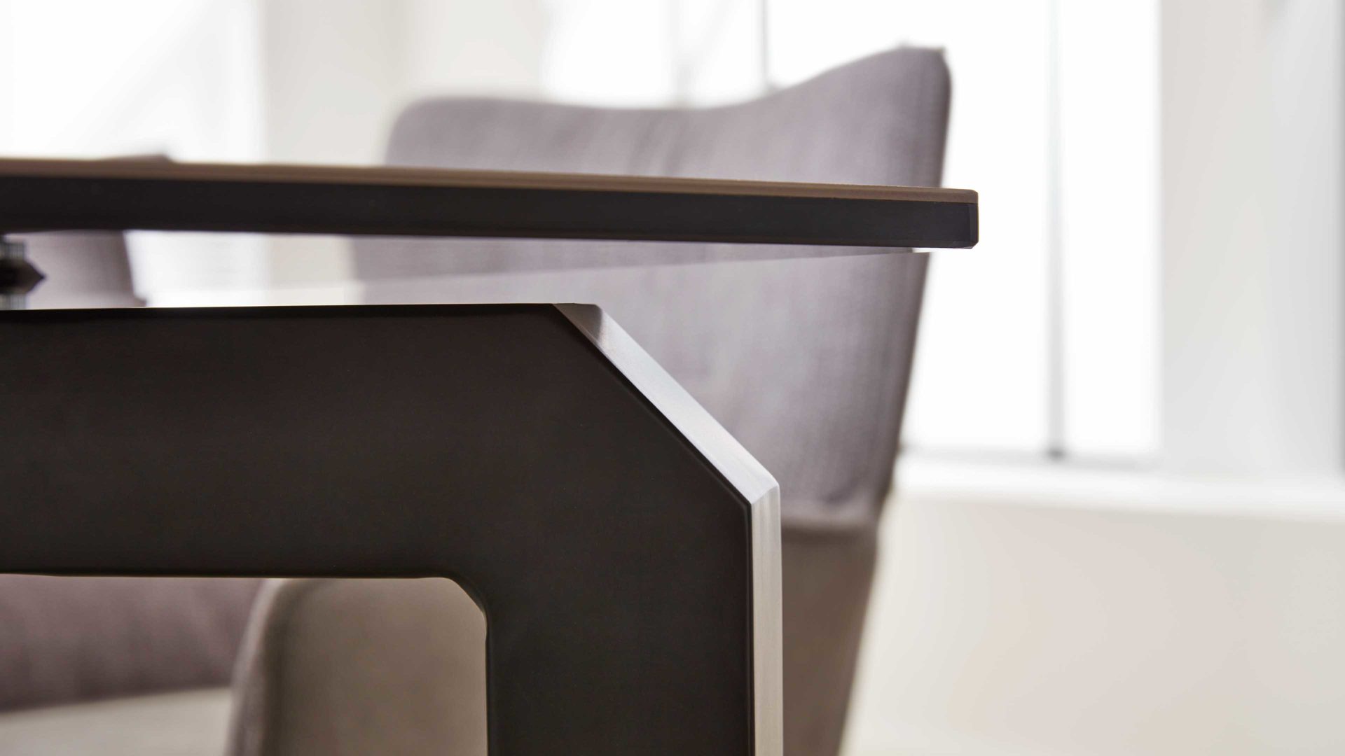 Elegant, robust und funktional: Der Auszugtisch aus der Interliving Esszimmer Serie 5111 überzeugt mit einer Tischplatte aus grauer Glaskeramik und einem schwarzen Eisengestell. Diese Kombination aus edler Oberfläche und stabilem Unterbau verleiht dem Tisch einen modernen, markanten Look – ideal für stilvolle Essbereiche.