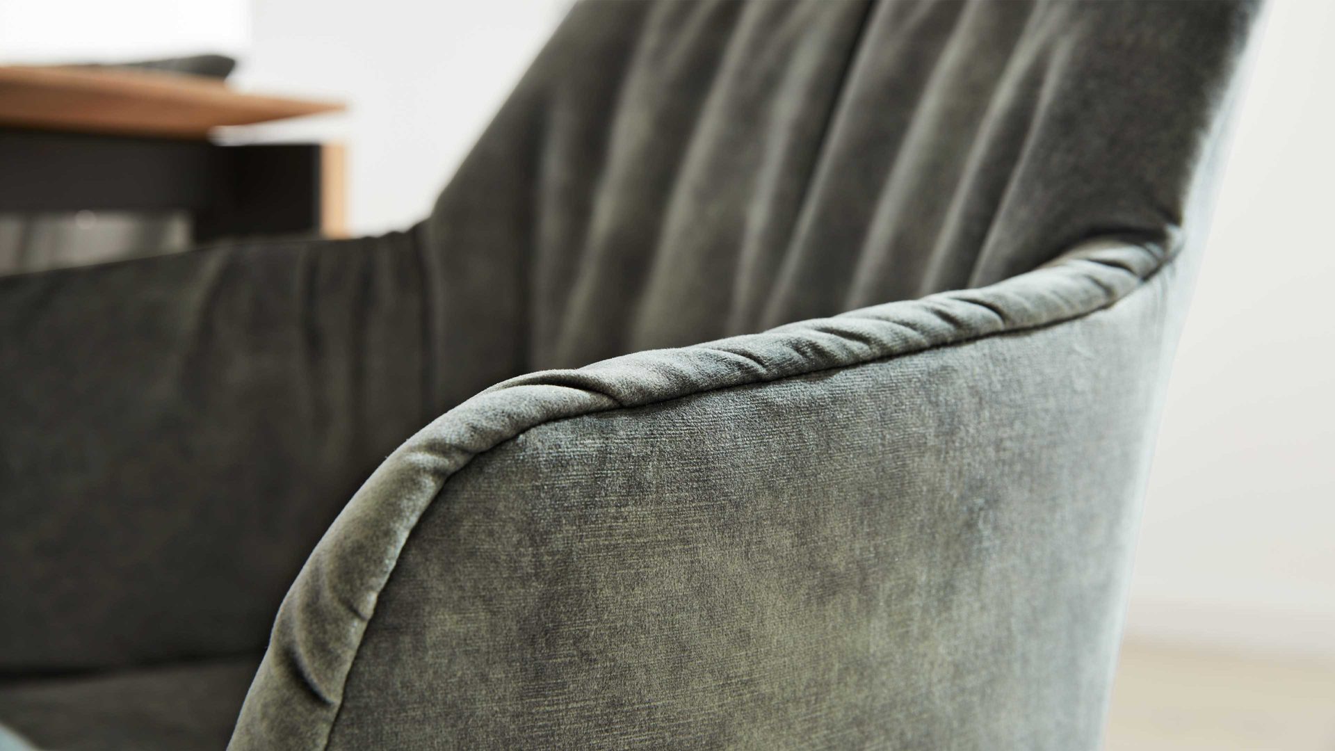 Der Armlehnstuhl aus der Interliving Esszimmer Serie 5110 verbindet stilvolle Optik mit hervorragendem Sitzkomfort. Mit seinem grünen Stoffbezug Genova und dem mattschwarz pulverbeschichteten Metall-Spinnenfuß präsentiert er sich modern, trendbewusst und vielseitig kombinierbar.