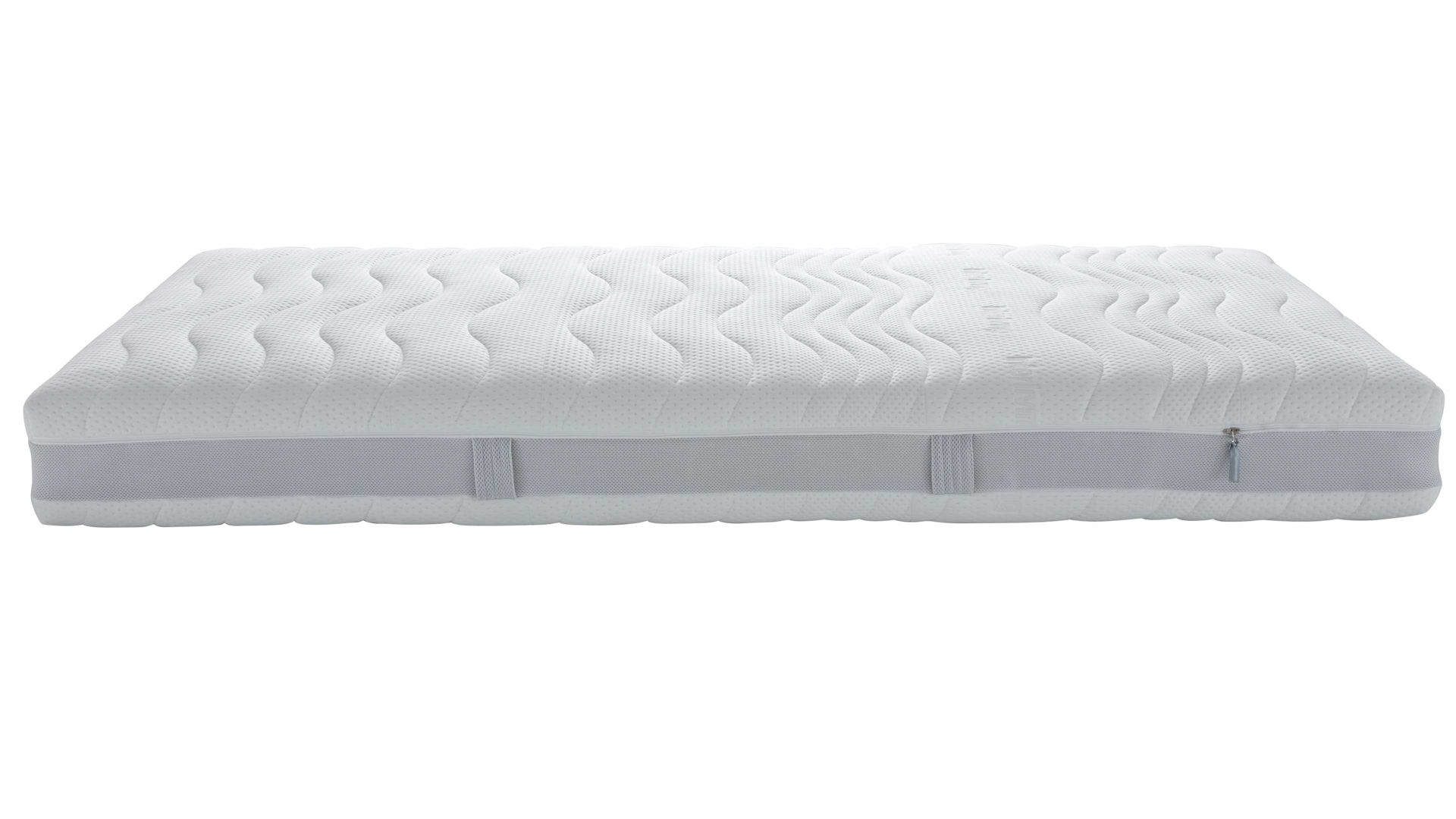 Die ergonomische 7-Zonen-AQUAPUR®-Federkerntechnologie mit rund 440 Taschenfedern (bezogen auf 100 x 200 cm) sorgt für eine gleichmäßige Druckentlastung in allen Liegebereichen. Durch den cleveren Sandwichaufbau und die festere Schaumpolsterung im Beckenbereich stützt die Matratze gezielt Schulter-, Rücken- und Hüftpartie. Eine integrierte Sitzkantenverstärkung erleichtert das Ein- und Aussteigen. Zudem eignet sich die Matratze perfekt für motorisch verstellbare Lattenroste und Boxspringbetten – für höchsten Liegekomfort in jeder Schlafposition.