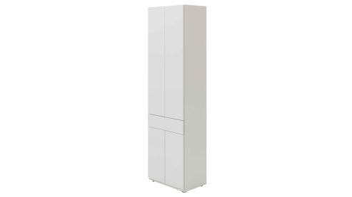 Für zusätzlichen Stauraum sorgt der große Stauraumschrank (Typ A060.430) mit vier Türen, einer Schublade und vier Holzböden. Mit Maßen von ca. 60 x 215 x 40 cm (BxHxT) bietet er jede Menge Platz für Ordner, Akten und persönliche Dinge, die du im Arbeitsalltag schnell zur Hand haben möchtest. Ergänzend dazu bringt das offene Regal (Typ A030.000) mit fünf Holzböden und einer holzfarbenen Rückwand Leichtigkeit und Offenheit ins Raumkonzept. Es misst ca. 30 x 215 x 40 cm (BxHxT) und eignet sich ideal für Bücher, Deko oder Arbeitsmaterialien, die du gerne sichtbar präsentierst.