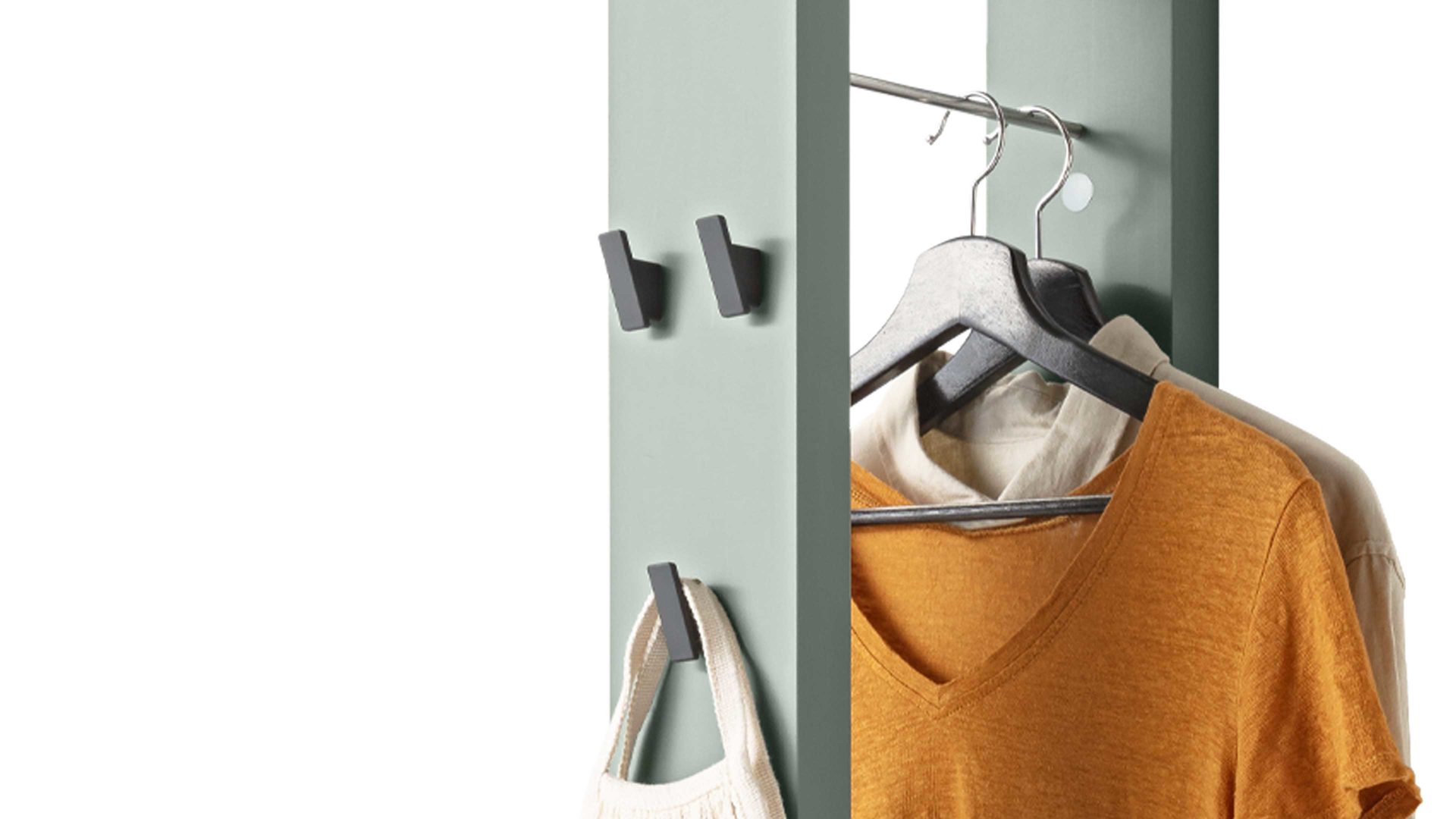 Mit ihren Mattlackoberflächen in zartem Piniengrün verkörpert die Wandgarderobe Bonnie moderne Eleganz.