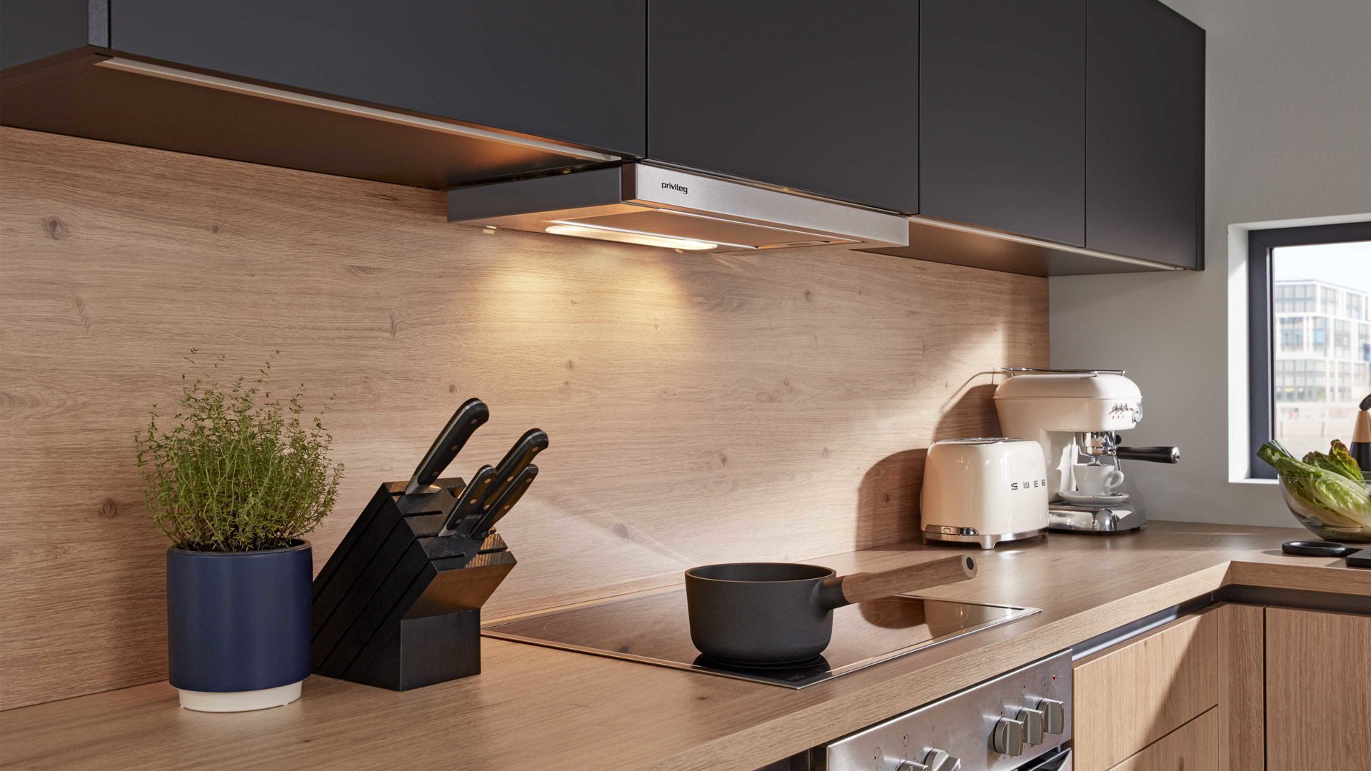 Geliefert wird die individuell planbare Systemküche Made in Germany mit hochwertigen Einbaugeräten der Marke privileg.