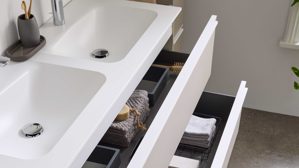 Zusätzlich erleichtern dir pflegeleichte Anti-Fingerprint-Oberflächen den Alltag und sorgen dafür, dass dein Bad lange sauber und gepflegt aussieht.
