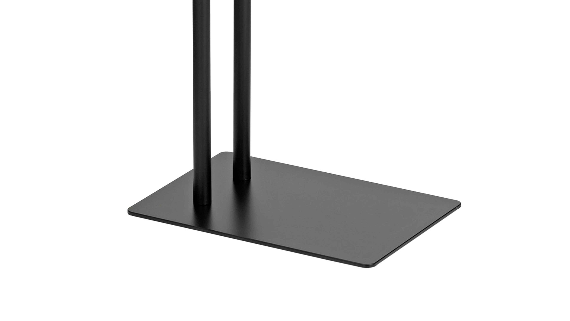 Sie haben die Wahl: Entweder Sie hängen zwei große oder mehrere kleine Handtücher auf die zwei feststehenden Stangen des Standmodells. Der Halter für Ihre Tücher steht auf einer Bodenplatte und hat die Maße von ca. 20 x 81 x 30 cm (BxHxL), womit das Modell sowohl in ein großes als auch ein kleineres Badezimmer passt.