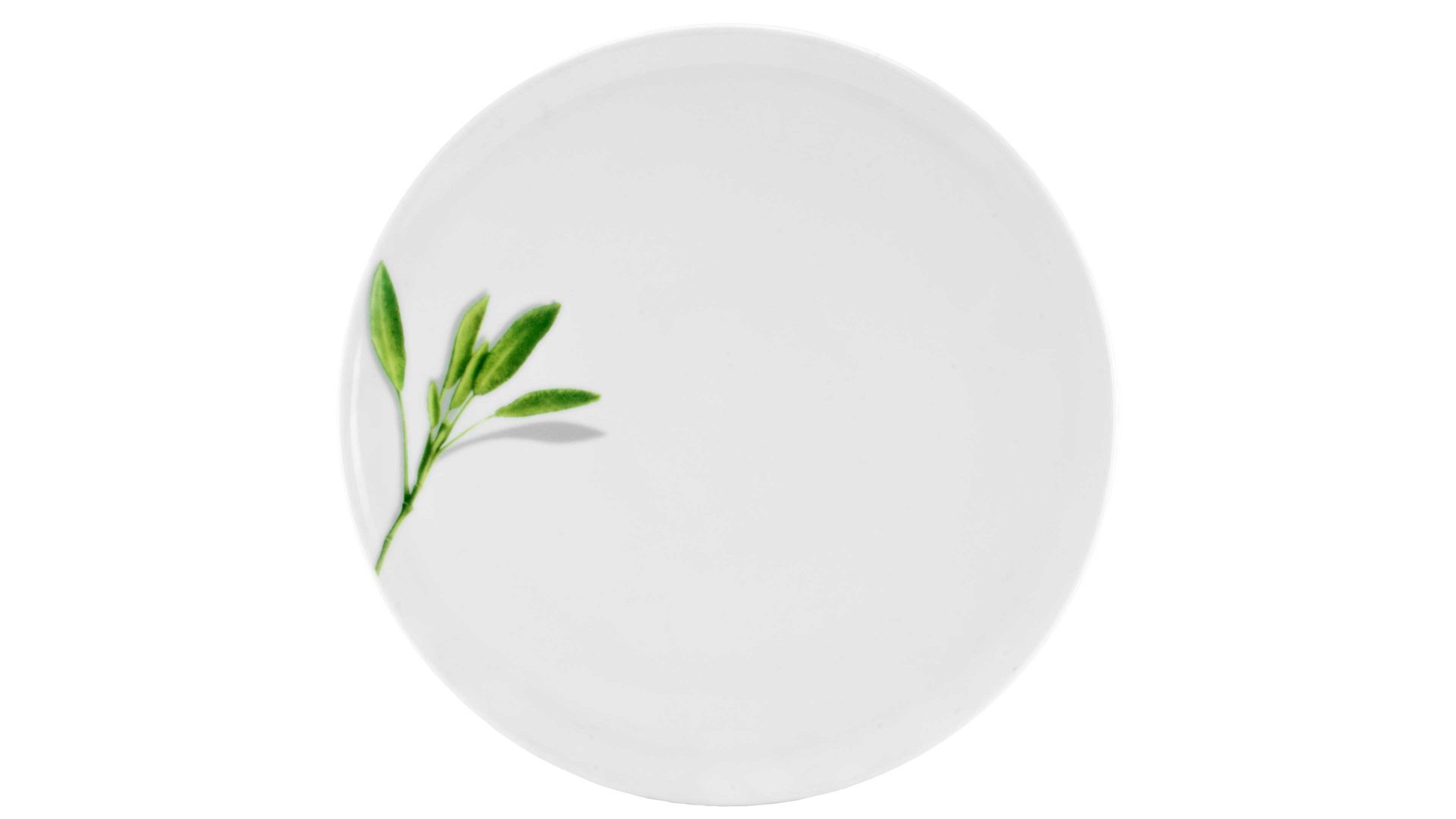 CREATABLE Pizzateller Europa Kräuter | weißes Porzellan | Motiv Salbeiblätter | spülmaschinenfest | mikrowellengeeignet | stapelbar | Durchmesser ca. 33 cm | verschiedene Motive und passende Pastateller erhältlich