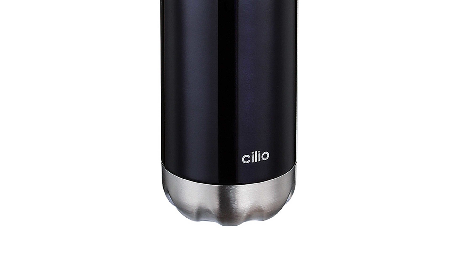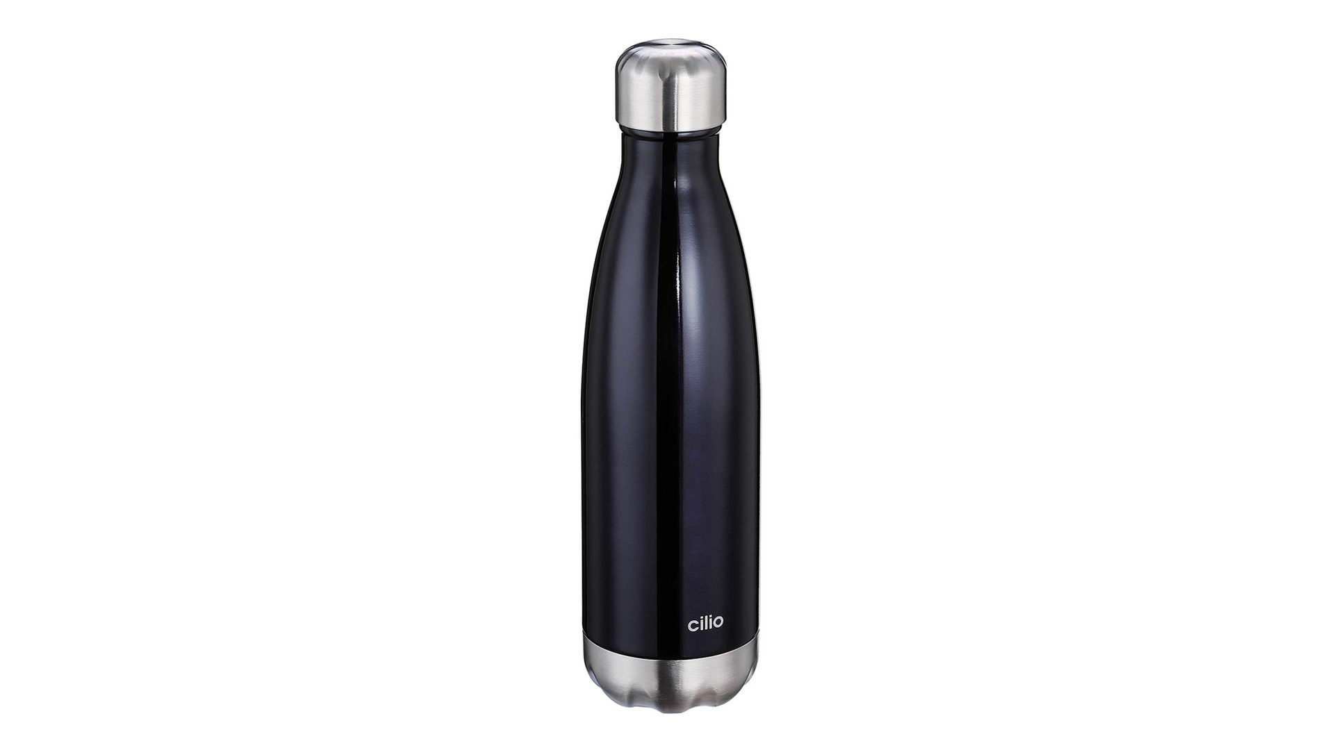 cilio Isolierflasche Elegante | schwarz lackiert Edelstahl | kupferbeschichtetes Doppelnwandsystem | bruchsicher | auslaufsicher | mit Schraubverschluss | geeignet für kohlensäurehaltige Getränke | Fassungsvermögen ca. 500 ml | hält bis zu 18 Stunden heiß oder bis zu 24 Stunden kalt | Durchmesser ca. 7 cm, Höhe ca. 26 cm | in verschiedenen Farben und zwei Größen erhältlich